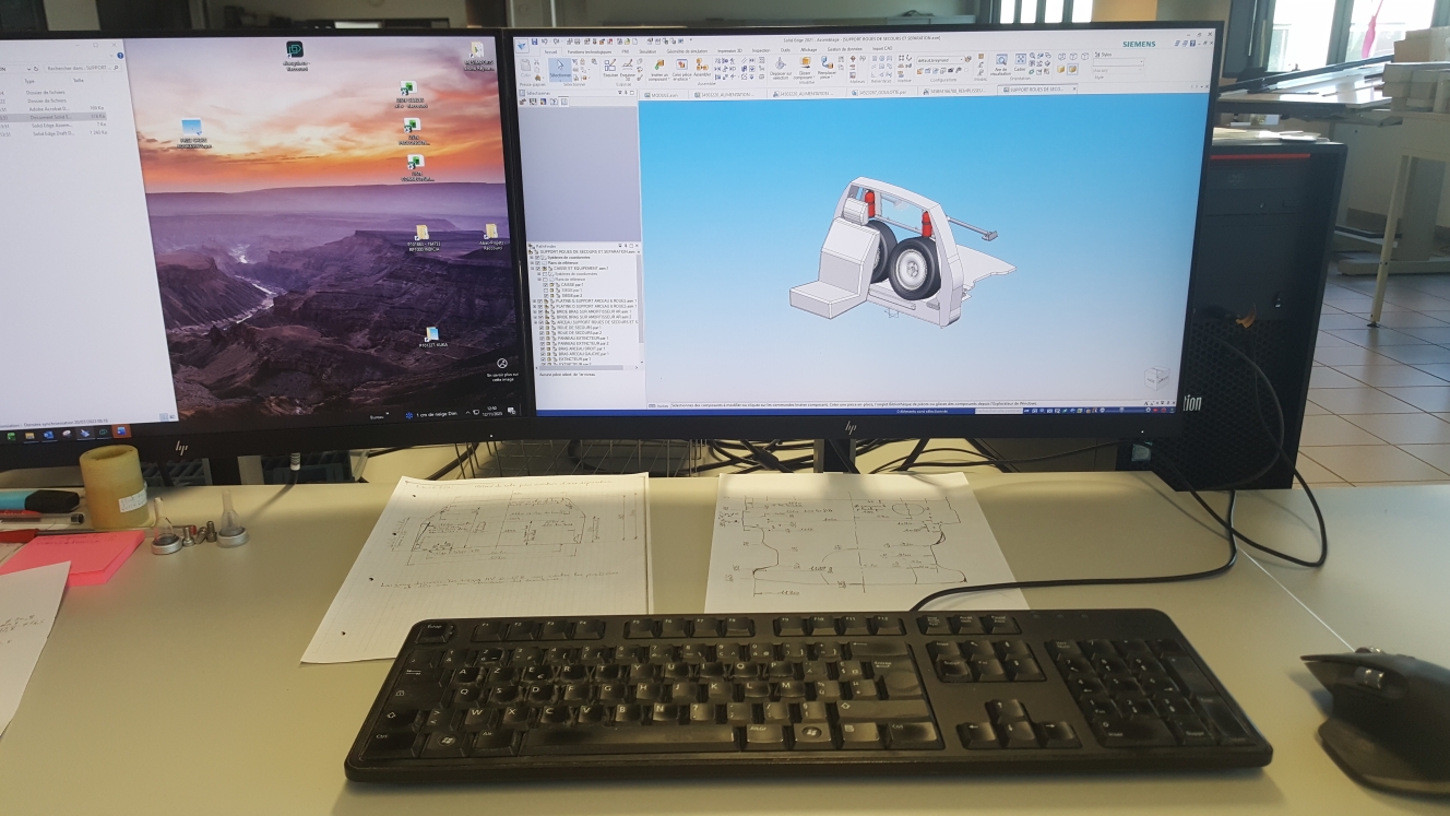 Dessin et fabrication d’une pièce pour compartiment et maintien des roues de secours à l’arrière des sièges avant. Un grand merci à MMB Chaudronnerie – Métallerie pour leur support pour cette fabrication.